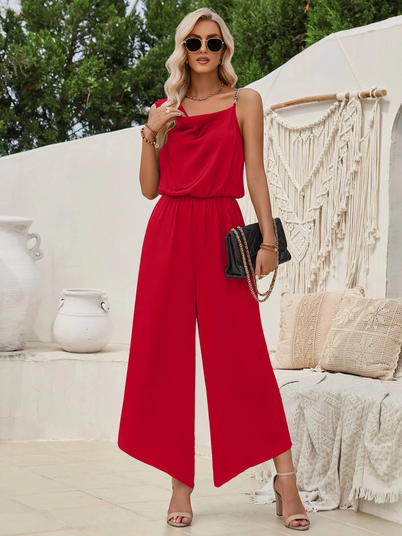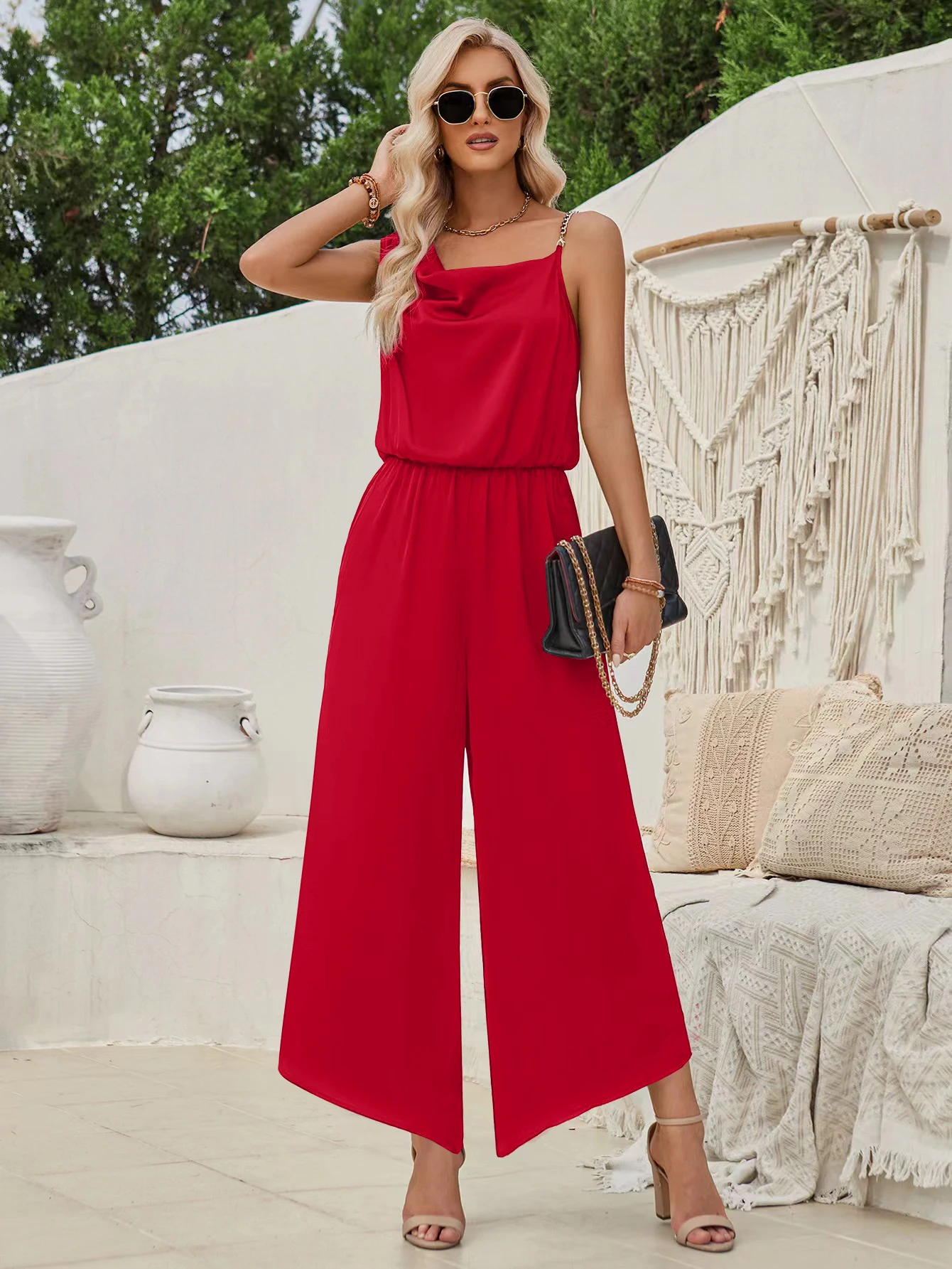 The suspender design adds a youthful, chic touch, while the solid color keeps it versatile and timeless. Perfect for women’s jumpsuit wedding guest, summer parties, streetwear styling, or casual outings, this piece blends sets sexy appeal with effortless sophistication.