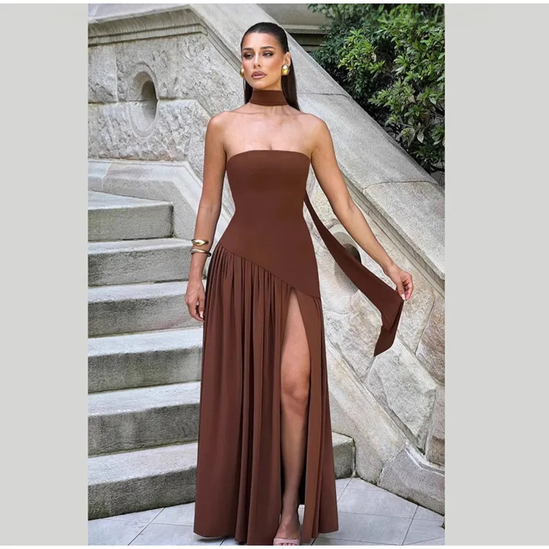 Una prenda estrella que combina sofisticación y encanto seductor. Este sexy vestido presenta un elegante escote palabra de honor y una atrevida espalda descubierta que realza tus curvas con un toque de sensualidad. La abertura alta alarga las piernas y aporta el toque perfecto de dramatismo, lo que lo convierte en una prenda imprescindible para eventos nocturnos, graduaciones y fiestas de lujo. Diseñado para mujeres que aman los vestidos sexys que las hacen lucir elegantes, este vestido ofrece un estilo elegante desde cualquier ángulo. Ya sea que camines por la alfombra roja o bailes toda la noche, este sexy vestido atraerá todas las miradas.