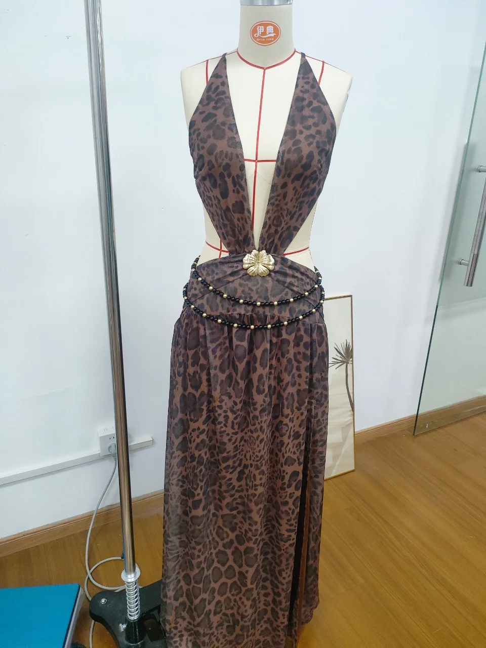 A bold yet elegant design crafted to flatter and impress. Featuring a sultry halter neckline, deep plunging front, and open back, this dress enhances feminine curves with confidence. The ruched sides hug your body in all the right places, while the high side slit adds a daring touch that elongates the legs. Designed with a sophisticated patchwork style, it blends glamour and class effortlessly.